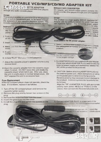 В комплект с адаптор с входно напрежение 12-24VDC и изходни напрежения 1.5V, 3V, 4.5V, 6V, 7.5V, 9V, 12V с ток 800mA,