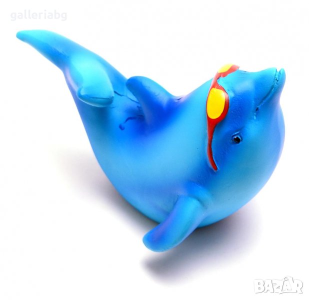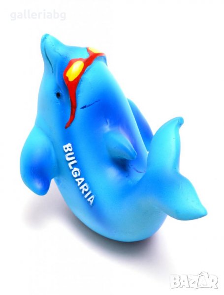 Сувенирна декоративна фигурка - делфинче със слънчеви очила и надпис Bulgaria. Фигурката е изработена от полирезин.