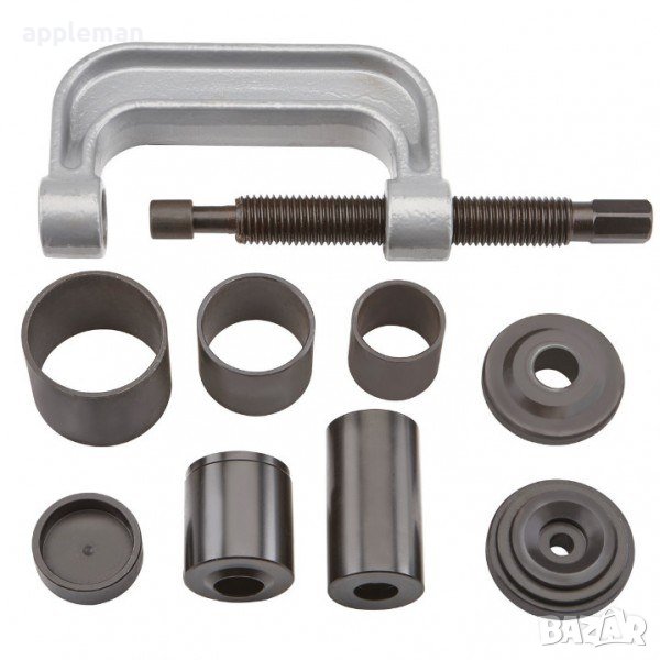 Комплект скоби за монтаж и демонтаж на втулки, накрайници и шарнири MarPol се състои от 9 части. Може да се използва при повечето леки и лекотоварни превозни средства; 4 х 4 автомобили и ванове, които притежават притискащ тип сферични шарнири. Подходящи са за използване във всеки автосервиз.