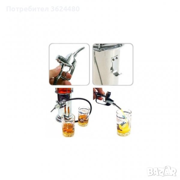 Ретро-бензиновата колонка е изработена от метал, каната, в която се наливат напитките е направена от пластмаса, а маркучът на бензиновия пистолет е гумен. Освен това на колонката има място, където да закачите пистолета. Диспенсърът е много стилен и със сигурност вашите гости ще останат приятно изненадани от начина на поднасяне на тяхното питие. Както всяка истинска колонка, така и тази си има бензинов пистолет, с който да заредите чашите до горе. В нея може да наливате всякакви напитки - алкохол, натурални сокове, безалкохолни и други. Вместимостта на съда е 500 мл. Скалата от двете страни на каната показва количеството течност, което сте напълнили в нея.