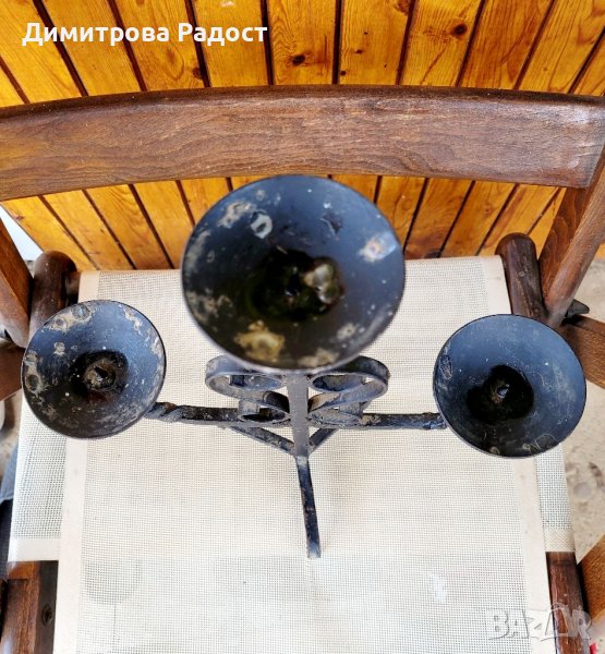 Свещник ковано желязо за три свещи. Състояние използвано добро. , снимка 1 - Антикварни и старинни предмети - 40039238 Свещник ковано желязо за три свещи. Състояние използвано добро. , снимка 2 - Антикварни и старинни предмети - 40039238 Свещник ковано желязо за три свещи. Състояние използвано добро. , снимка 3 - Антикварни и старинни предмети - 40039238 1/3