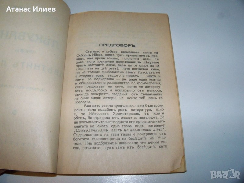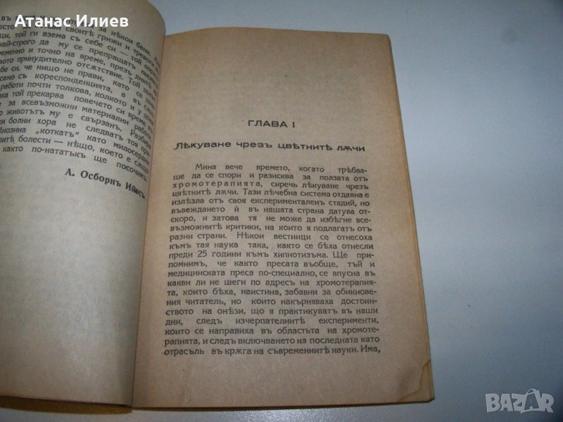 "Лекуване чрез цветните лъчи" автор Албърт Осбърн Ийвс, съдържа и статията "Символичният език на цветните лъчи" от Петър Дънов. Книгата е първо и единствено издание от 1935г. Издадена е като премия към окултното списание "Житно зърно" в ограничен тираж. Книгата е с меки корици, 72 стр. в отлично състояние.