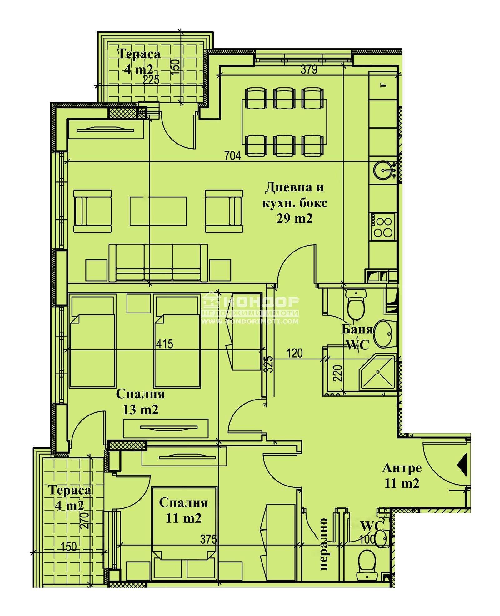 Оферта 56156: Предлагаме ви възможността да закупите просторни и светли апартаменти, намиращи се в сграда със съвременна архитектура с иновативна визия, съчетаваща модерни технологии с качествени материали на строителство, позиционирана в самото сърце на квартал Кършияка!!! Апартаментите са с отлично разпределение !!! Жилището което ви предлагаме се състои от дневна с трапезария и кухненски бокс 29м2, две самостоятелни спални, две санитарни помещения, перално, входно антре и две тераси. Сградата се строи от реномирана фирма с множество готови сгради в града, като можем да ви покажем качеството на изпълнение и материалите които се използват. Жилищата се отвършват според всички изисквания за качествено строителство, хидравличен асансьор, блиндирани входни врати, висок клас ПВЦ - дограма. Свободни Паркоместа и Гаражи на партерно ниво. Разсрочено плащане в рамките на строителството. СТРАХОТНА ИНВЕСТИЦИЯ!