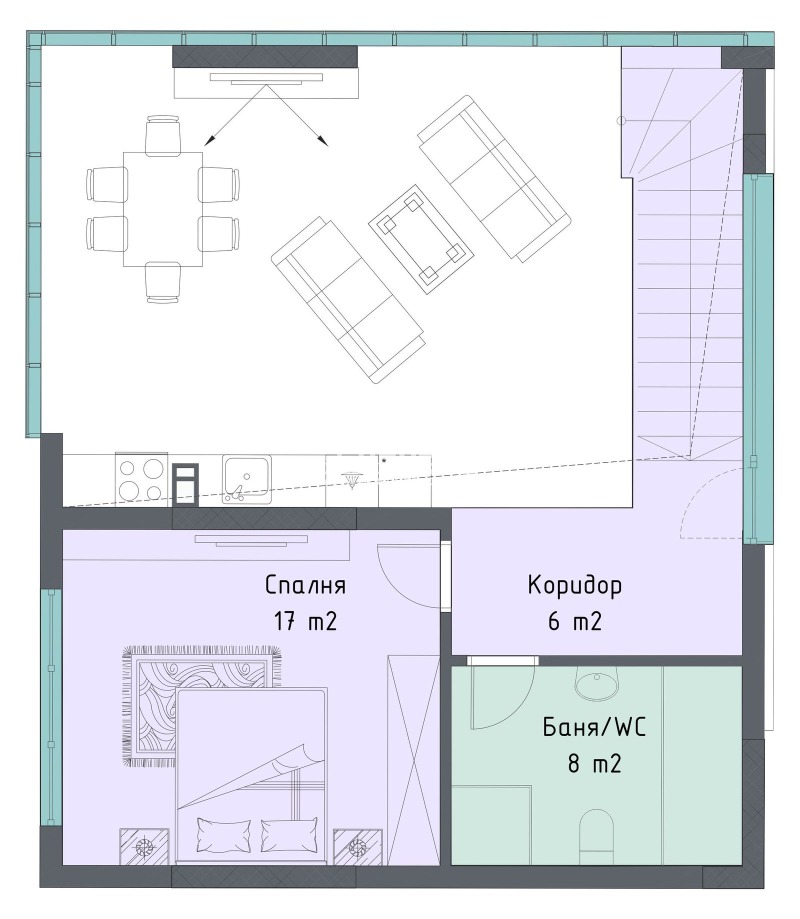 Оферта 59474:Предлагаме Ви просторен и функционален тристаен апартамент в новоизградена модерна сграда със собствен стил с изчистена визия, проектирана така, че да създаде максимален комфорт и уют за живеене. Проектът предвижда нискоетажно строителство, вътрешен двор с оформен детски кът и зелени зони за релакс и почивка, партерен етаж с магазини и четири жилищни етажа. Жилището се състои от прекрасна ъглова дневна 47.40 кв.м. с множество прозорци оформена на кътове: кът за мека мебел с TV секция, кът за хранене с голяма трапезна маса и кухненски бокс, една голяма самостоятелна спалня 17кв.м., баня с тоалетна и стълби, които водят към второ ниво където са ситуирани втора спалня 17кв.м. и голяма баня с тоалетна 8кв.м. Сградата привлича вниманието със своята локация, разположена в близост до Гребна база и парк Отдих и култура, обособили се като едни от най-развиващите се и предпочитани райони за живеене в града. Изпълнението е осъществено с висококачествени материали и съвременни технологии, по европейски стандарт, шесткамерна PVC дограма, блиндирана входна врата с 4-странно заключване, сензорно осветление, хидравлични асансьори с огледална кабина. Гъвкави схеми на разсрочено плащане в рамките на строителството, както и съдействие за банково кредитиране с изключително изгодни условия за клиенти на агенция Кондор! СВОБОДНИ ПОДЗЕМНИ ГАРАЖИ и Паркоместа! Приложените снимки са от готови сгради на строителя! 3D изображенията са примерни!!!