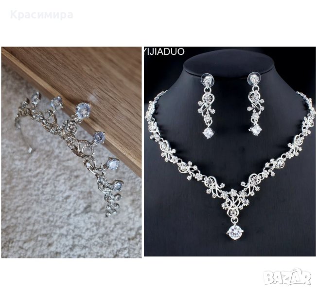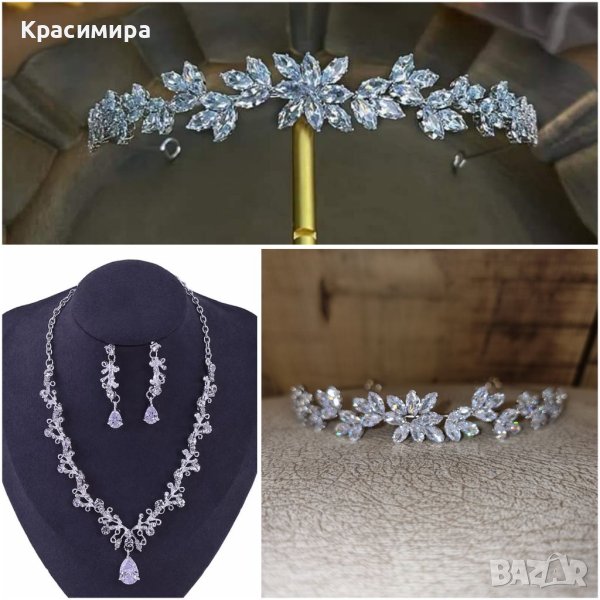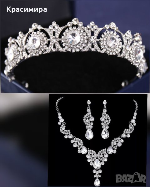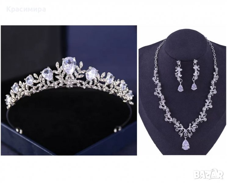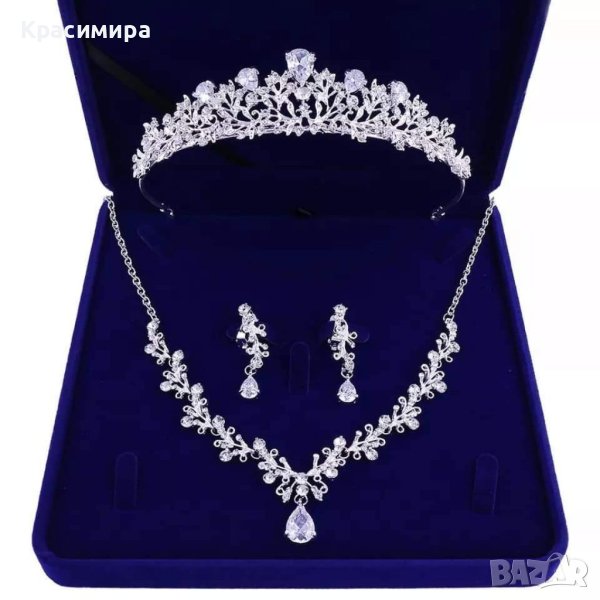 Диадема тиара корона колие обеци комплект → Обява 40043916