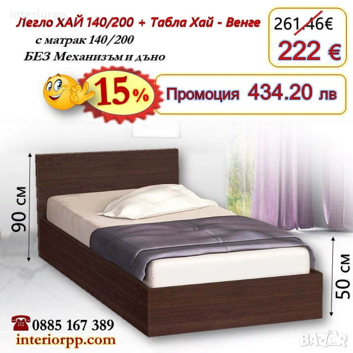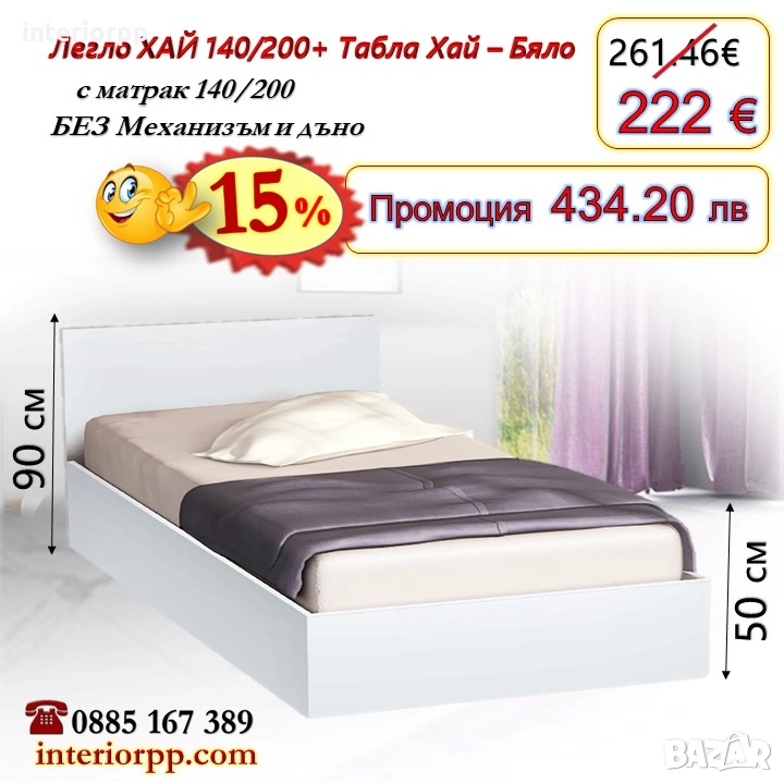 Легло спалня ХАЙ 140 с табла Хай с матрак 140/200 - 15%Промоция до 14.02.25