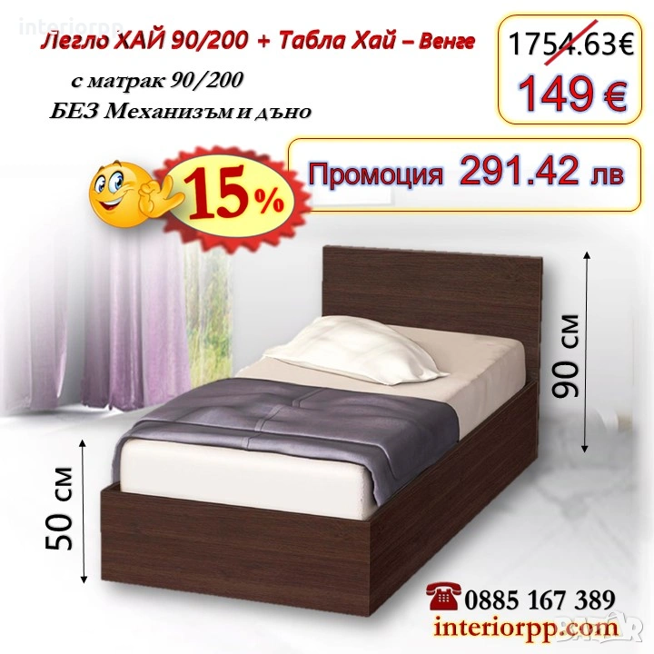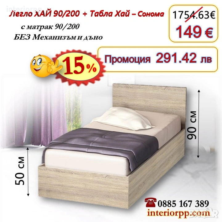 Легло ХАЙ с табла Хай с матрак 90/200 - 15%Промоция до 14.02.26