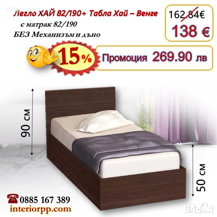 Легло ХАЙ с табла Хай с матрак 82/190 - 15%Промоция до 14.02.26
