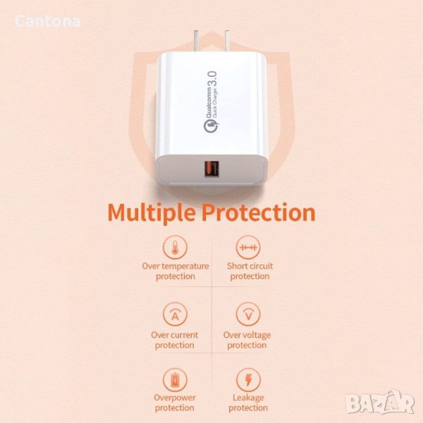 USB захранващ адаптер USB 3.0 5VDC-3A/ 9VDC-2A/ 12VDC-1.5A с функция Quick Charge 3.0 за мобилни телефони, смартфони или таблети Вход: 100-240VAC 50 /60Hz 0.6A Изход: 5VDC-3A/ 9VDC-2A/