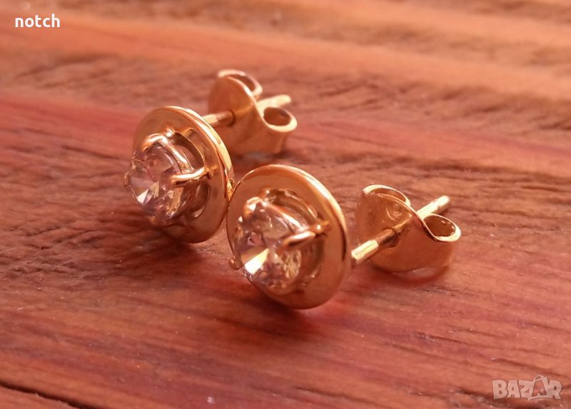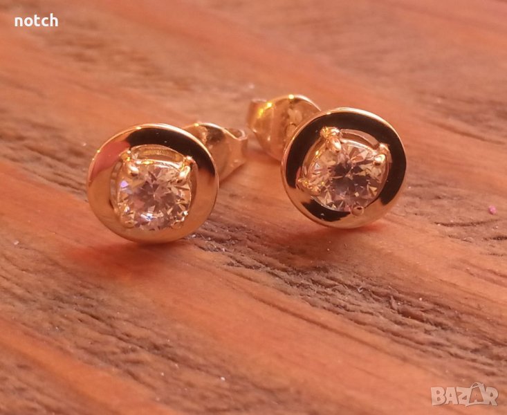 Обеците са изработени от жълто злато 14 карата. Диаметъра им е 7мм. Камъните са циркони 4мм.