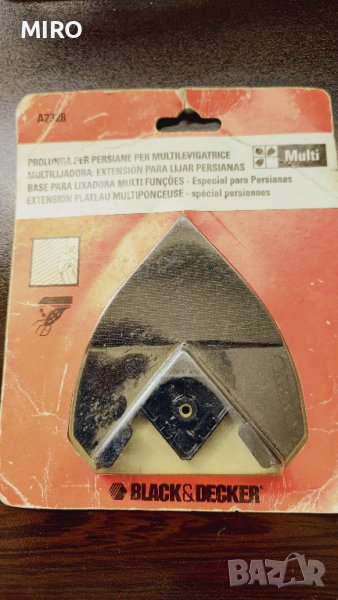 black&decker A 2328 Приставка за шкуркане на дървени щори. Посредство специално пригоден винт се захваща за основната шкуркаща глава на машината . Достига до трудно почистващи зони на дървените ламели на щорите. При интерес пишете или се обадете на тел. 0877746909 Изпращам само със Спиди !