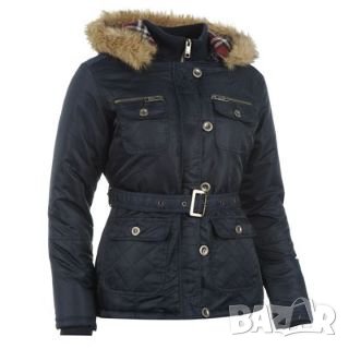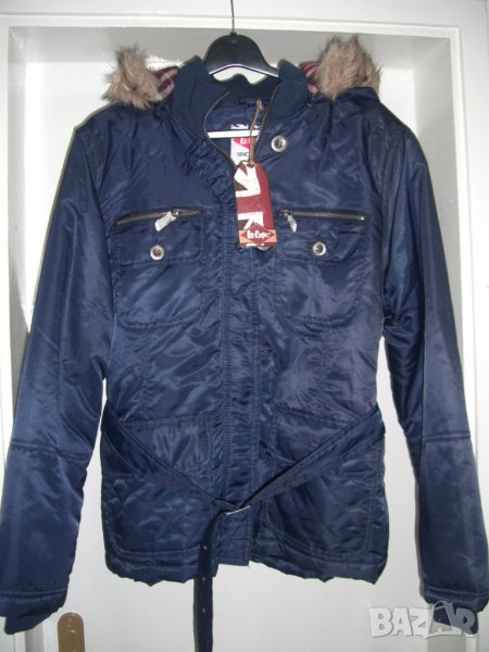 Оригинално английско яке Lee Cooper Hooded Bomber Jacket Ladies по английска номерация 16. Якето е плътно, ватирано, подходящо за зимния сезон. Ширината под мишниците е 59 см. едностранно, талия - 52 см., ширина в най-долната част - 59 см., якето е с висока талия. Дължина от рамото - 66, дължина под мишницата - 41, дължина ръкав отгоре - 62, дължина ръкав отдолу - 48. Качулката може да се сваля. Материя 100% найлон (шушляк).