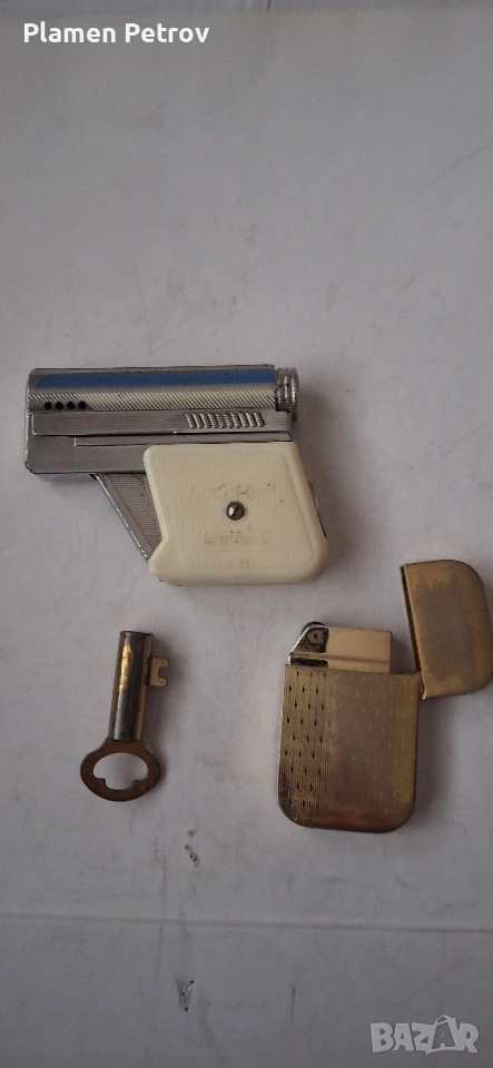 Запалка пистолет, барабан бронзова перка → Обява 40048457