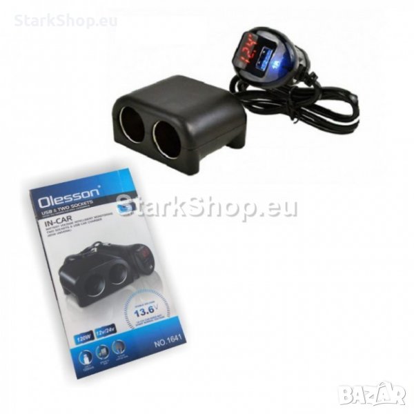 Двоен разклонител за запалка на кола с две гнезда и с 1 USB изход за зареждане на Таблети, Навигации, Телефони, Игри и др. Все по-необходим, удобен и търсен продукт с елегантен дизайн и индикатор за захранване – Волтметър.