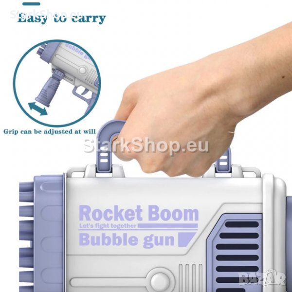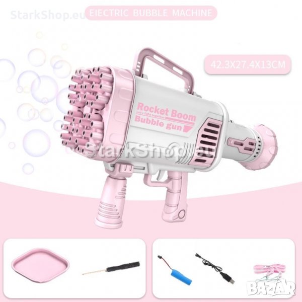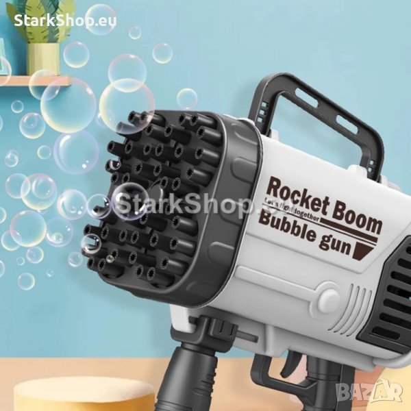 44 дула за балони едновременно. Истинска буря от светещи сапунени балони. Огромен автомат за сапунени балони 44 HOLE BUBBLE GUN с 44 дула за светещи LED балони. Най-мощната ръчна машина за сапунени балони с огромна батерия, перка и 44 дула за балони едновременно. Истинска буря