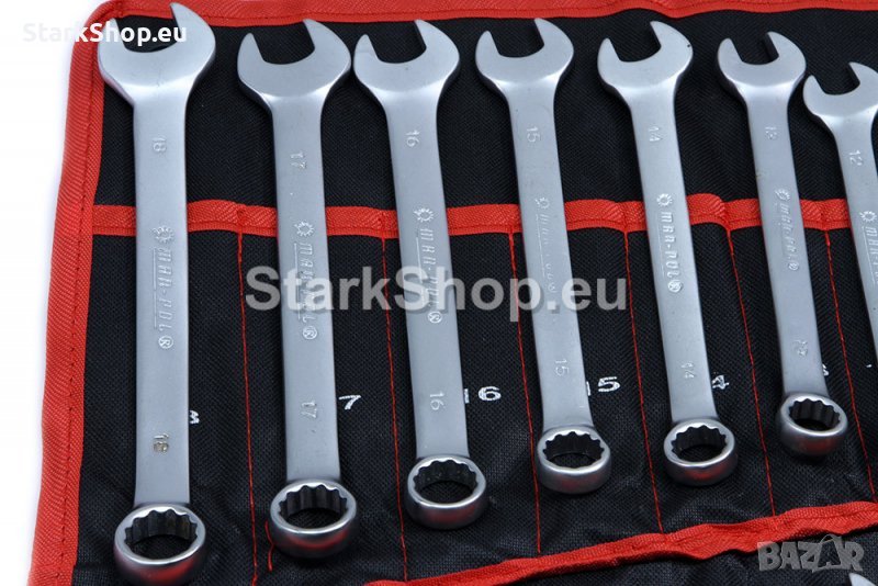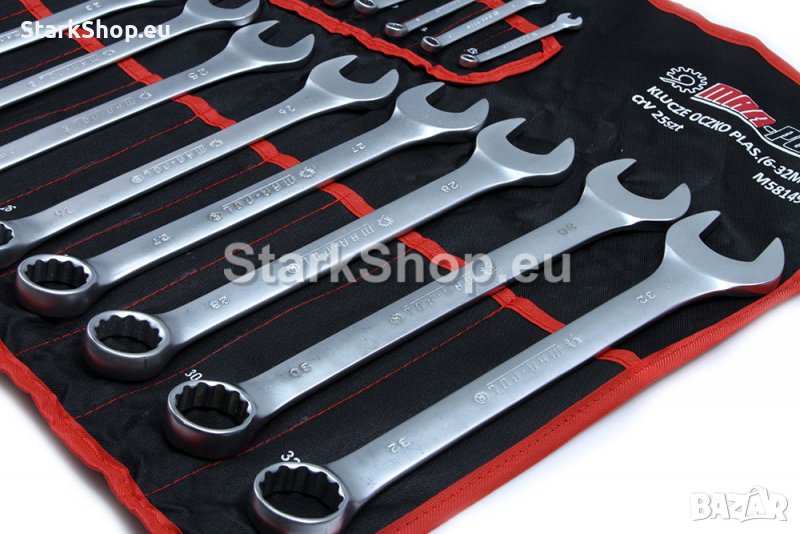 Комплект звездогаечни ключове MAR-POL в текстилен калъф – 25 броя, с размер 6 – 32 мм. Инструментите са изработени от хром-ванадиева стомана.