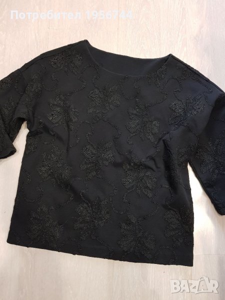 Черна, спортно елегантна и стилна блуза на марката Massimo Dutti размер XS/S, свободна кройка, ръкава е до лакътя. Изключително качество, стил и комфорт, които предлага марката. Стои много добре съчетана както за официален повод, така и за свободното време, комбинирана с кецове. Блузата е с интересни нашивки по нея. Носена броени пъти.