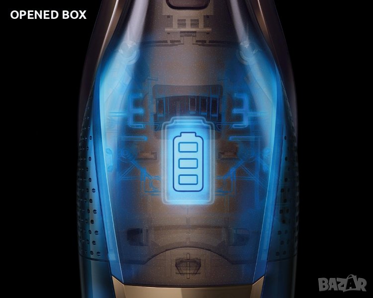 Повече мощност за по-дълго време с литиевата батерия TurboPower, която позволява двойно по-дълго почистване и е по-лека и лесна за използване. Лесна за смяна и бърза за зареждане, батерията издържа до 35 минути, индикаторът показва кога трябва да се презареди.