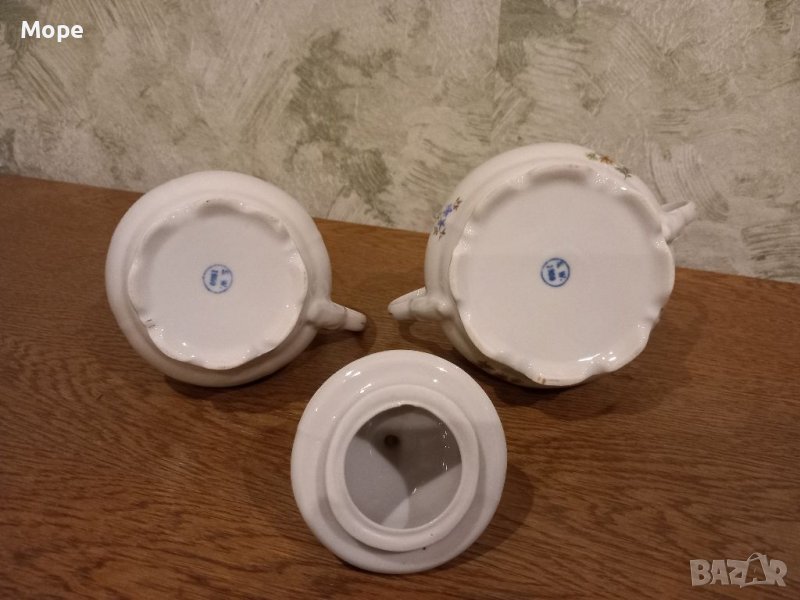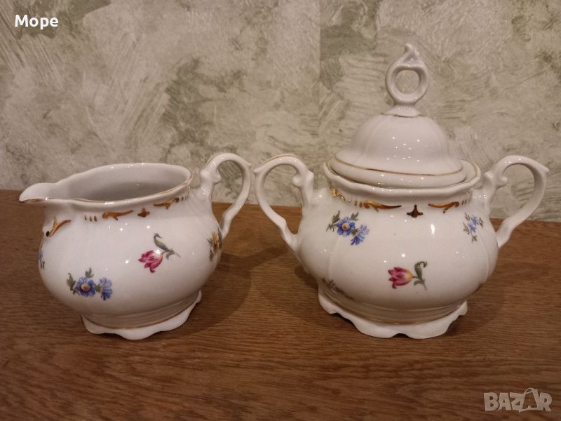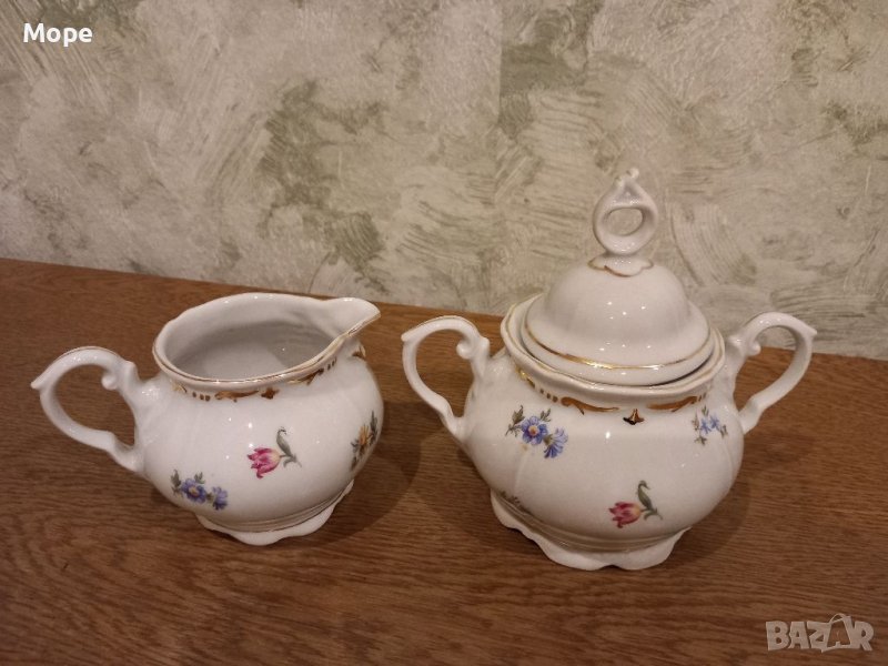 Лот порцеланова захарница и латиера. Еднакви цветове. Произведени в България.