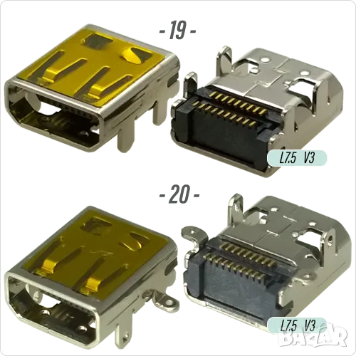 Букса конектор HDMI , mini HDMI SMT, Micro 19 pin HD connector → Обява 40051744