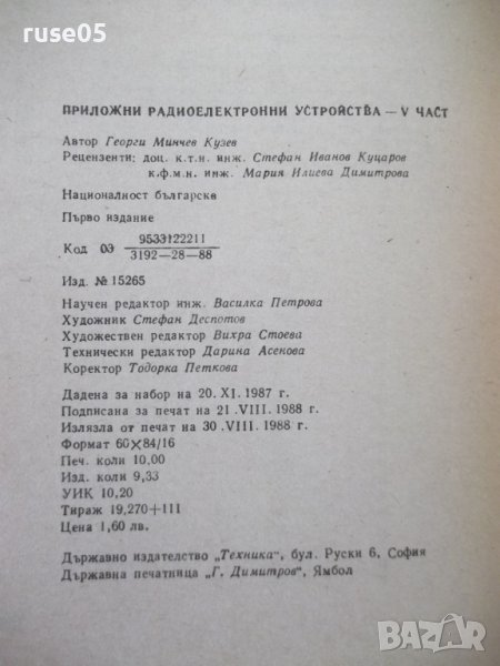 Книга"Приложни радиоелектронни устройства-V ч.-Г.Кузев"-160с → Обява 40051817