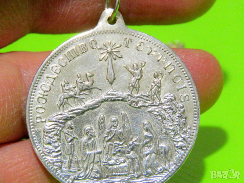Медальонът е изработен от сребро и е с размери 38 мм .