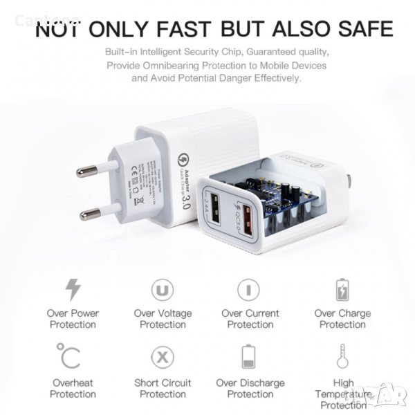 - Технология за бързо зареждане: зарядното Quick Charge, зарежда устройства, съвместими с Quick Charge, 4 пъти по-бързо от конвенционалното зарядно устройство и до 0% до 70% само за 45 минути. Също така обратно с устройства за небързо зареждане до 2,4 A. Идеално като заместител на OEM зарядни устройства за дома, офиса, при пътуване или подаръци за приятели и семейство.