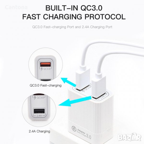 - 30 W бързо USB зарядно устройство за стена: 2 USB порта: разполага с 18 W бързо зареждане и 5 V/2,4 A порт за зареждане в едно зарядно устройство, за да отговори на различни нужди от бързо зареждане, позволява ви да зареждате два смартфона или таблета едновременно с оптимална скорост и общ максимален изход до 30W. Специално проектиран да предлага високоскоростно високоскоростно зареждане до 2,4 A. A за iPhone, Pad и други устройства без бързо зареждане.