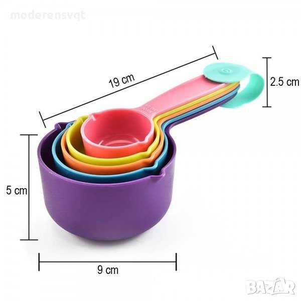 Комплект от пет мерителни лъжици за подправки и продукти. Готварски мерителни чашки за измерване.
