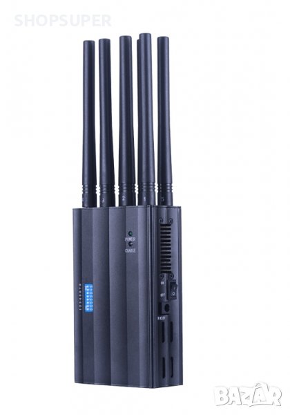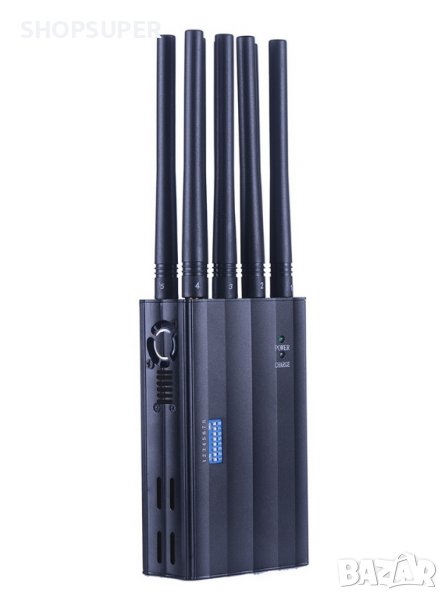 заглушител за GSM , GPS , WiFi и 4G . Блокира сигнала на телефони , навигации , проследяващи устройства , тракери , рутери и интернет . Има два индикатора за работа и зареждане и копче за вкл /
