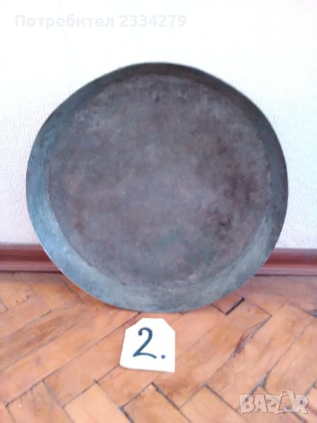 медни тави за баници,баклави,меса и други , N:1 широчина 38см., дълбочина 3см.,тежи750гр.,цена 40лв.; N:2 широчина 35см.,дълбочина 5см.,тежи 800гр.,цена 35лв.( орнаментирана); N:3 широчина 35см.,дълбочина 4.5см.,,тежи 800гр.,цена 30лв.(орнаментирана);