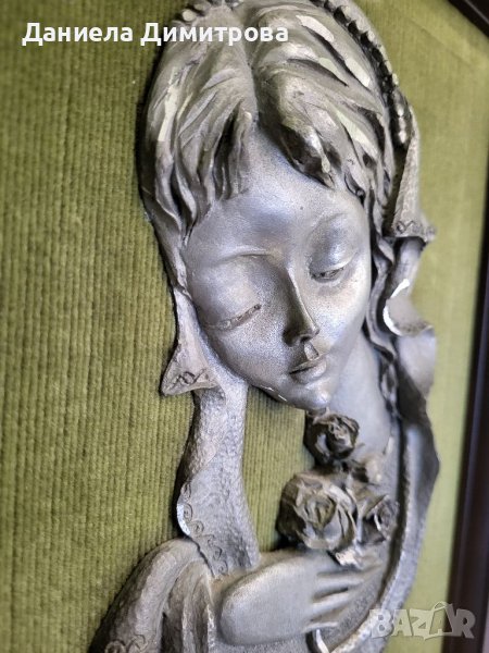 Рамка ПВЦ с калаена отливка на момиче с роза върху плюш.