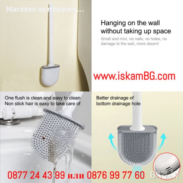 Силиконовата глава на четката предотвратява събирането на косми и други малки отпадъци, както при стандартните четки за тоалетна. Дръжката е достатъчно дълга, за да почистите и най-недостъпните места в тоалетна чиния, без да се изцапате. Главата на тоалетната четка е водо-отблъскваща, елиминирайки неприятностите при капене. Удобна с не плъзгащо се сцепление, тя спестява усилия и труд. Удобна за хващане, не плъзгаща се дръжка. Вентилационният дизайн позволява влагата да се изпарява, за да не се задържат миризми и да се предотврати образуването на мухъл. Така излишната вода бързо да се изпарява, което предотвратява появата на бактерии и е лесна за почистване. Четката приляга плътно в поставката, посредством капак, инсталиран в горния край на четката. Така се гарантира, че няма да има миризми. Контейнерът на четката е стилен и елегантен. Монтира се лесно на стената, без дупчене и пирони. Силиконовата четка е издръжлива. Не е необходимо през няколко месеца да купувате нови тоалетни четки. Захабява се по-бавно от стандартните модели. Силиконовият материал, от който е изработена четката предпазва и тоалетната чиния от надрасквания по време на почистване. Перфектно почистване без натискане, намалявайки времето за почистване.
