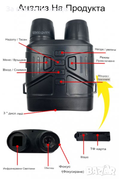 ГОЛЯМ ДИНАМИЧЕН ШИРОК ЕКРАН: Очила за нощно виждане с 3" TFT голям екран за гледане от изпъкналата леща. Нощното виждане съчетава отлична напълно оптична система с много покритие с видеокамера, позволяваща бързо заснемане на перфектната снимка или видео с висока разделителна способност.