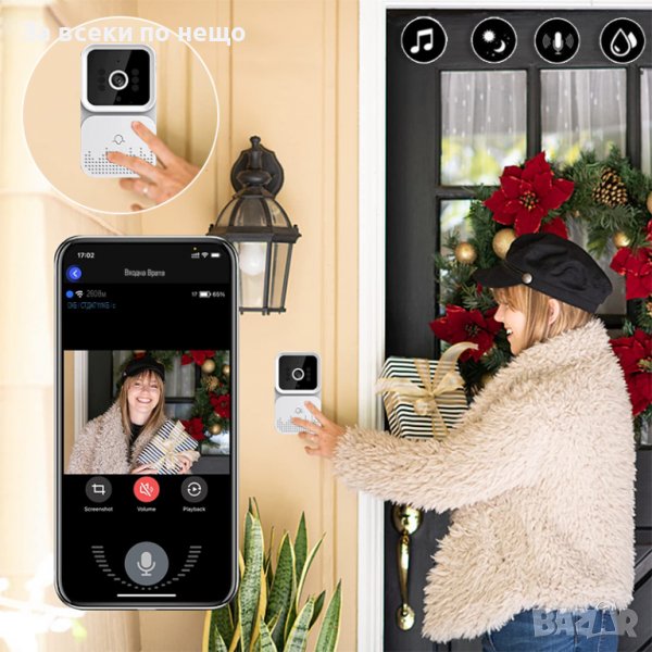 Умен звънец с вградена камера, безжична връзка с телефон TUYA