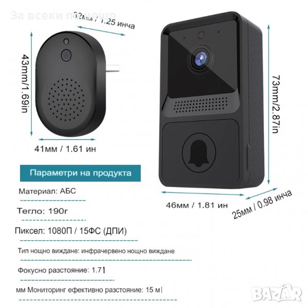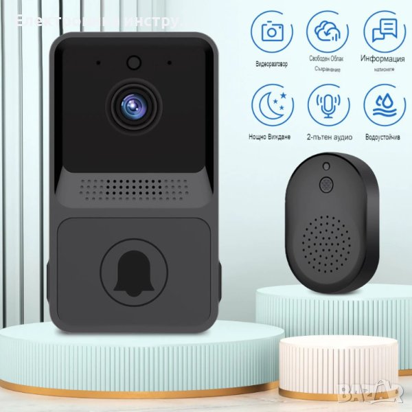 Благодарение на безжичната Wi-Fi технология, интелигентният звънец позволява гледане от разстояние и разговори с хората пред входната врата. Вграденият сензор за движение ви позволява автоматично да записвате видео, което след това може да възпроизведете на екрана на вашия смартфон.