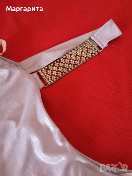 елегантно по тялото. С дясно голо рамо и ляв ефирен ръкав.