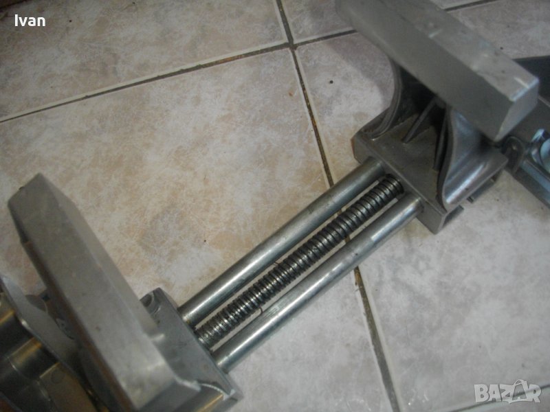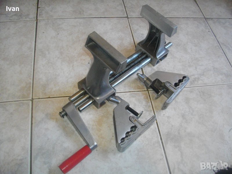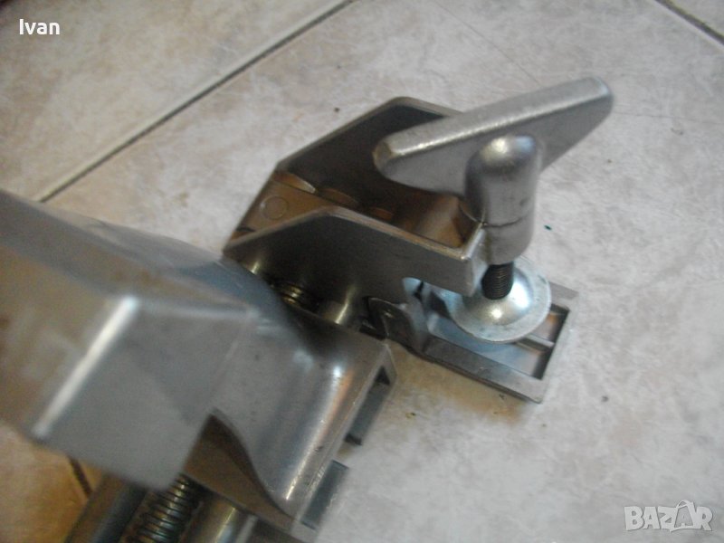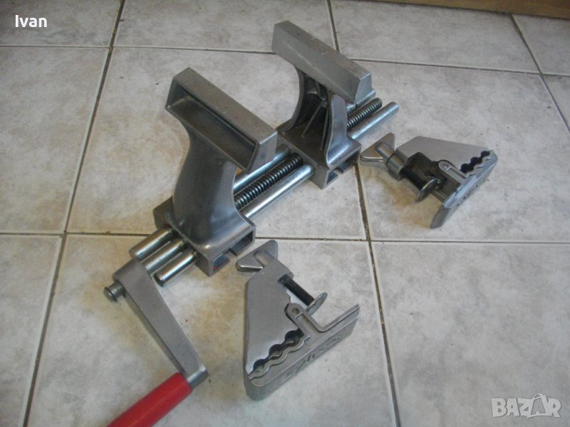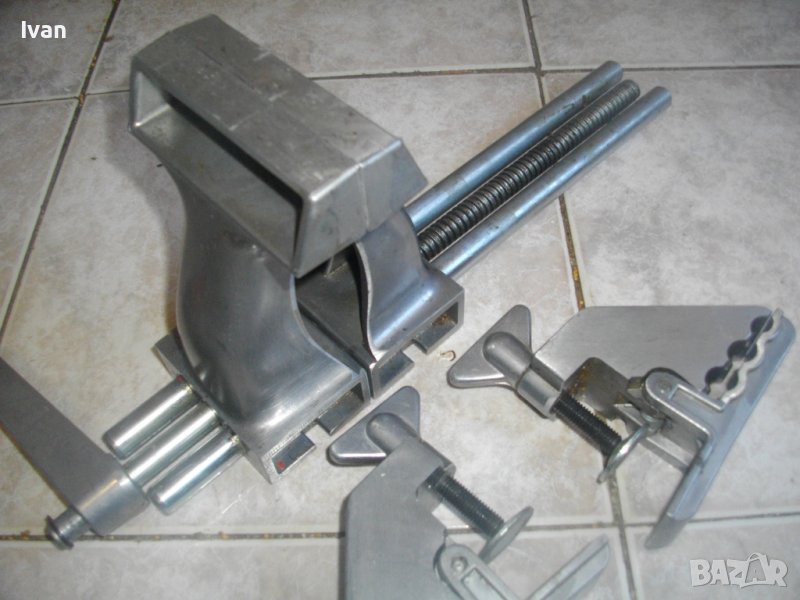 Почтиново, масивно, голямо менгеме, изцяло от алуминий, еднокомпонентно, професионален швейцарски модел с много голям захват от пълна 0 до 21,6 см без щипките, а с поставени щипки захват - 16 см. Цена 259 лв с двете щиипки.