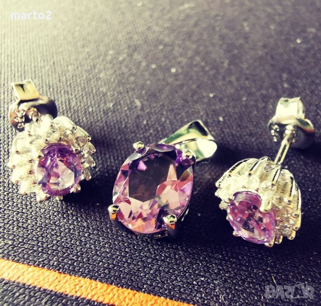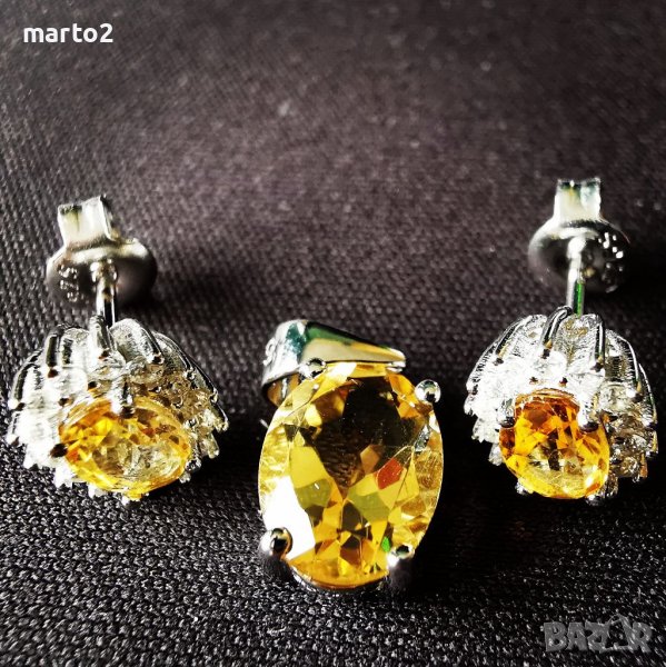 Елегантни Сребърни 925 Комплекти - Обеци и Колие с Натурални Гранати, Цитрини, Аметисти или Топази! → Обява 40060918