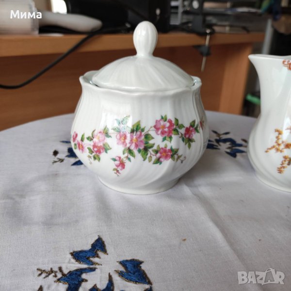 Български порцелан на Китка - Чаши 5 бр. без чинийки - 5 лева за брой вместимост 150 мл. Захарница - 15 лева за брой, каничка за мляко - 15 лева за брой. Чинии - 5 лева за брой