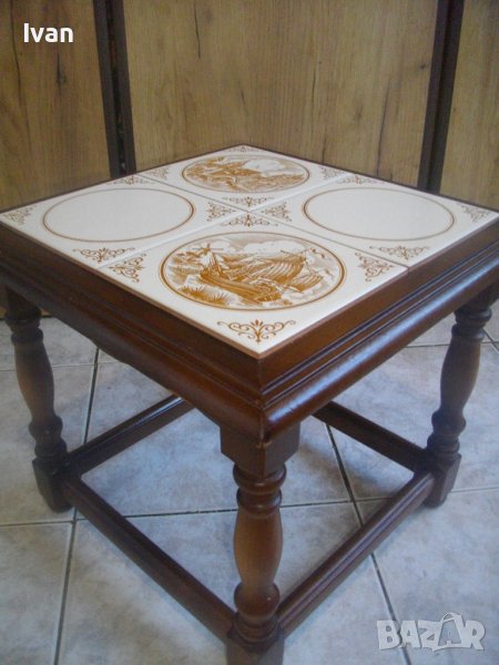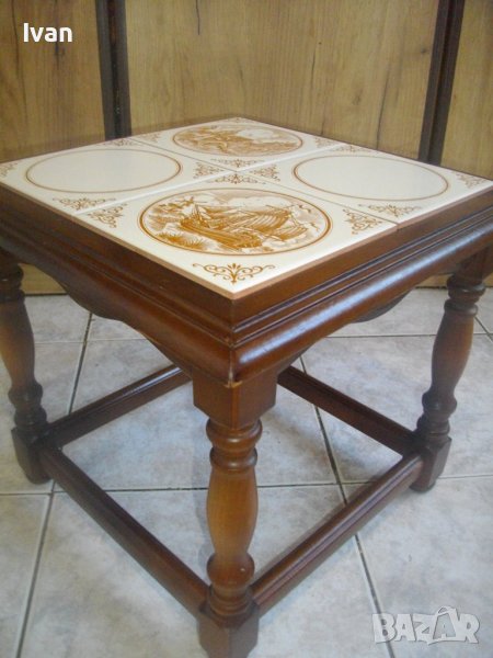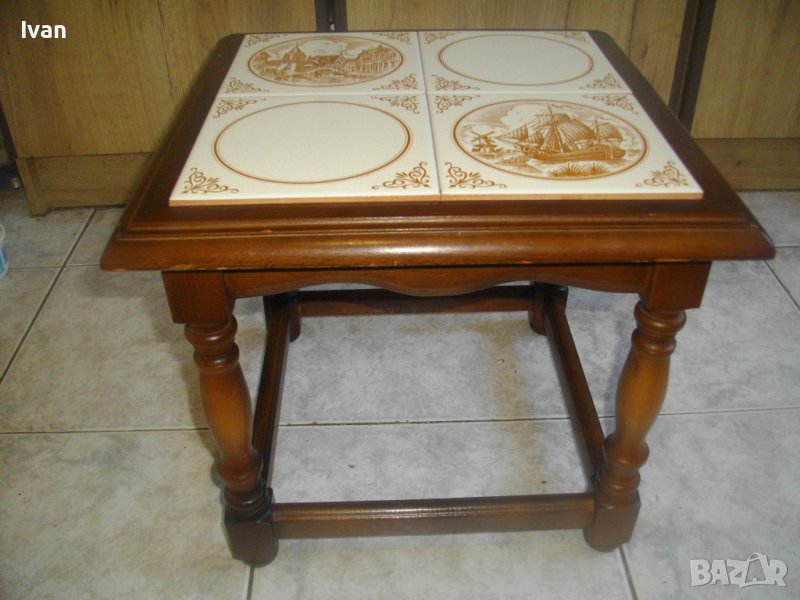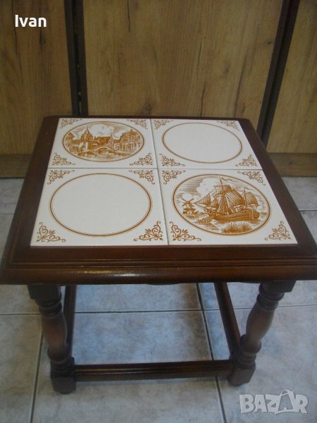 Малка Холандска/Нидерландска Помощна Масичка За Кафе С Плочки-Почти Нова-Отлично Състояние-Масивна