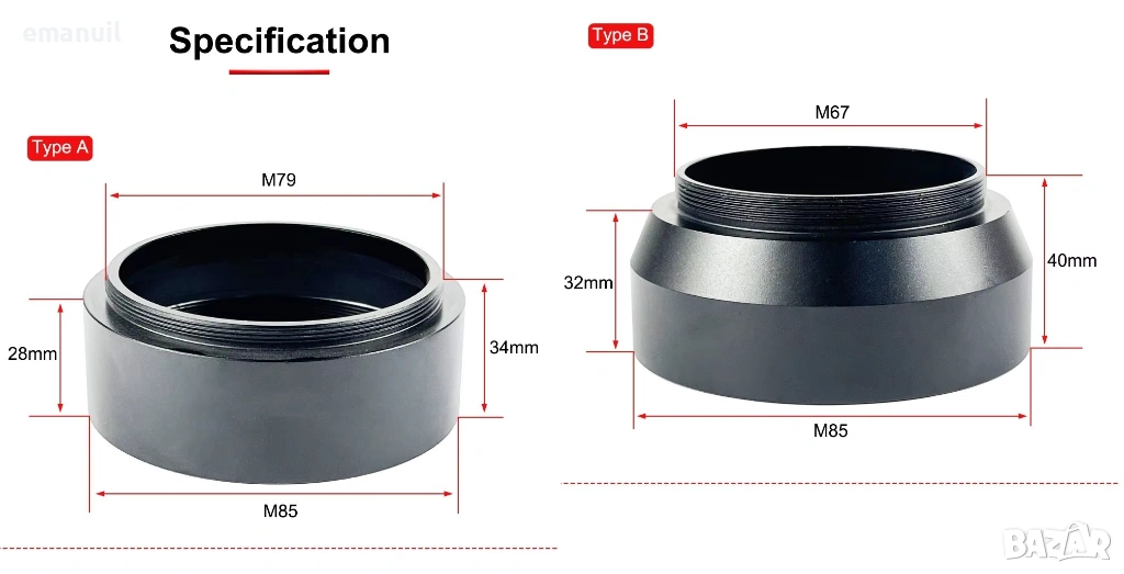 Преходник-адаптер от М85мм към М79мм или към М67мм