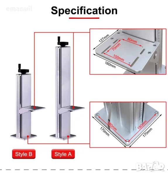 При гравиране на по-високи детайли от листов материал ще е необходима друга ръчна Z колона с височина 80см - цена 1000лв.