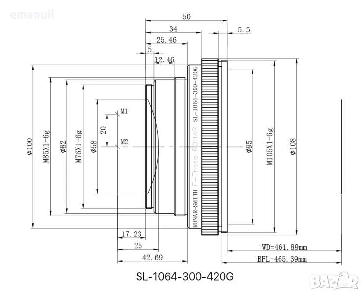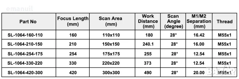 F-theta сменяеми лещи които определят правилната работна площ без изкривяване на изображениието