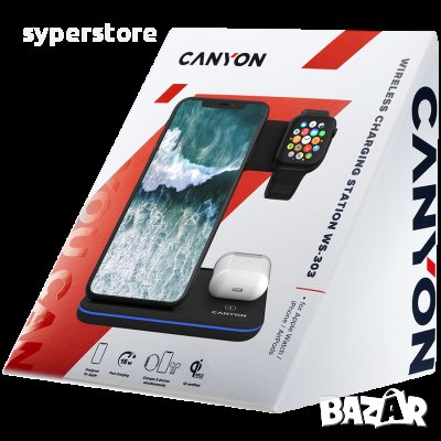 Безжично зарядно за телефон CANYON WS-303, 3in1 Wireless charger, Черен SS30259 → Обява 40064336