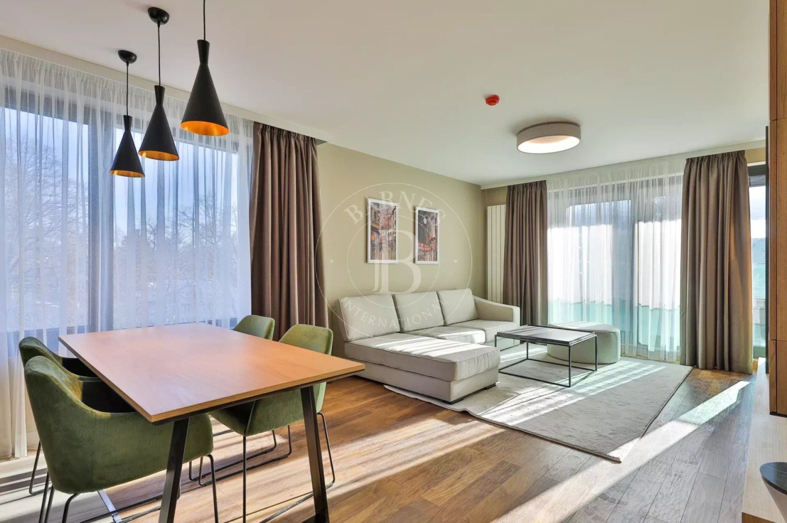 Интериорните решения са дизайнерски, с решения в светли и приятни тонове. Имотът се предлага обзаведен с качествени материали, мебели и оборудване за нуждите на бъдещия наемател.