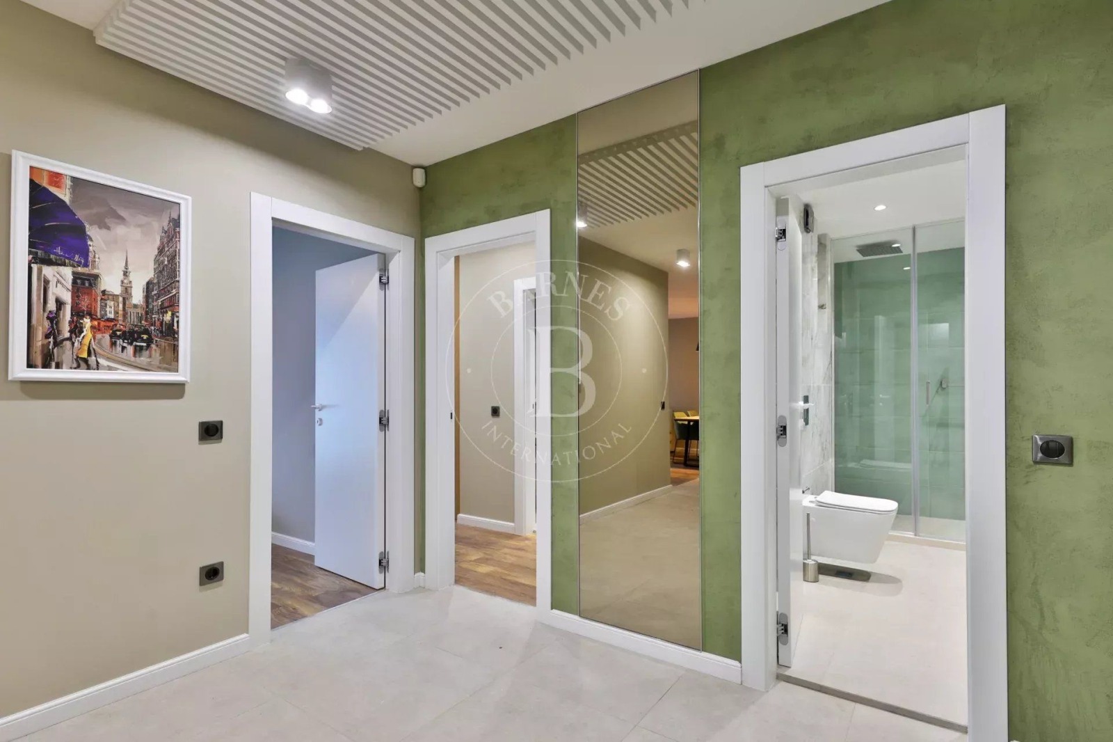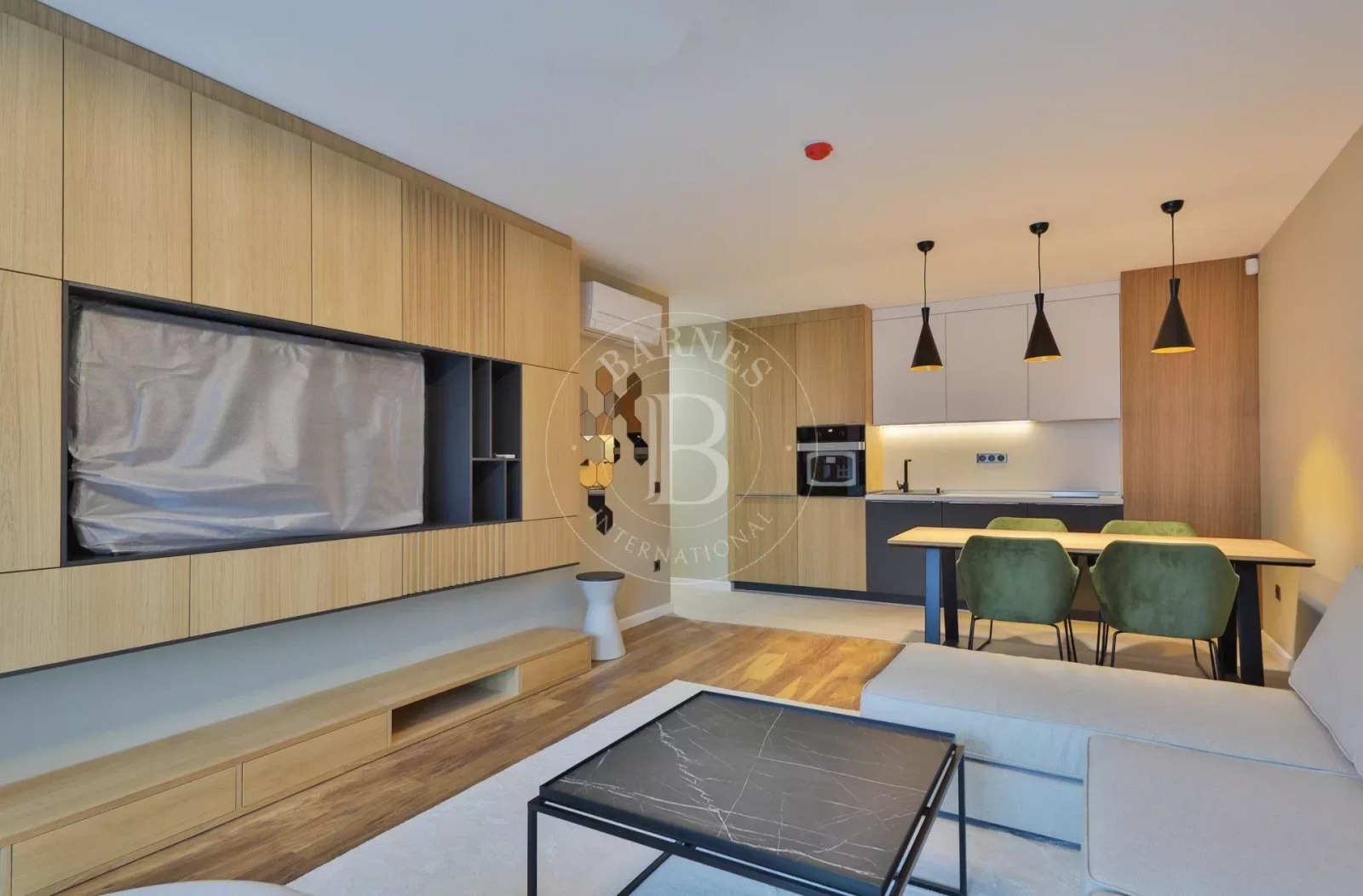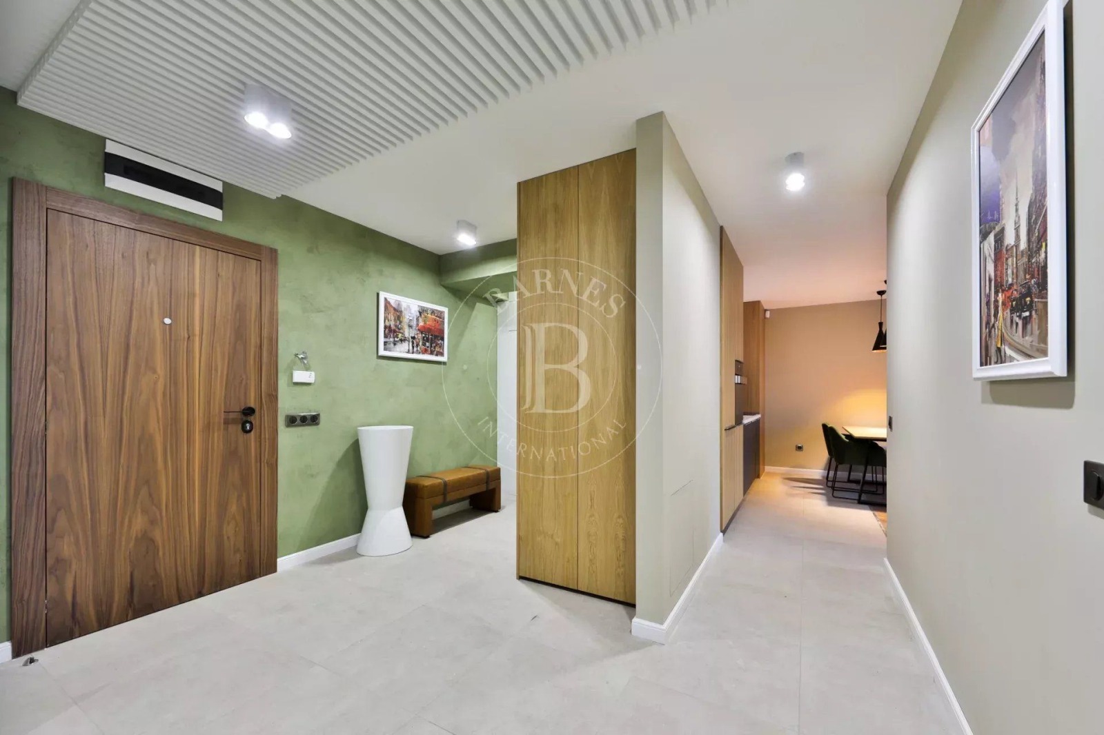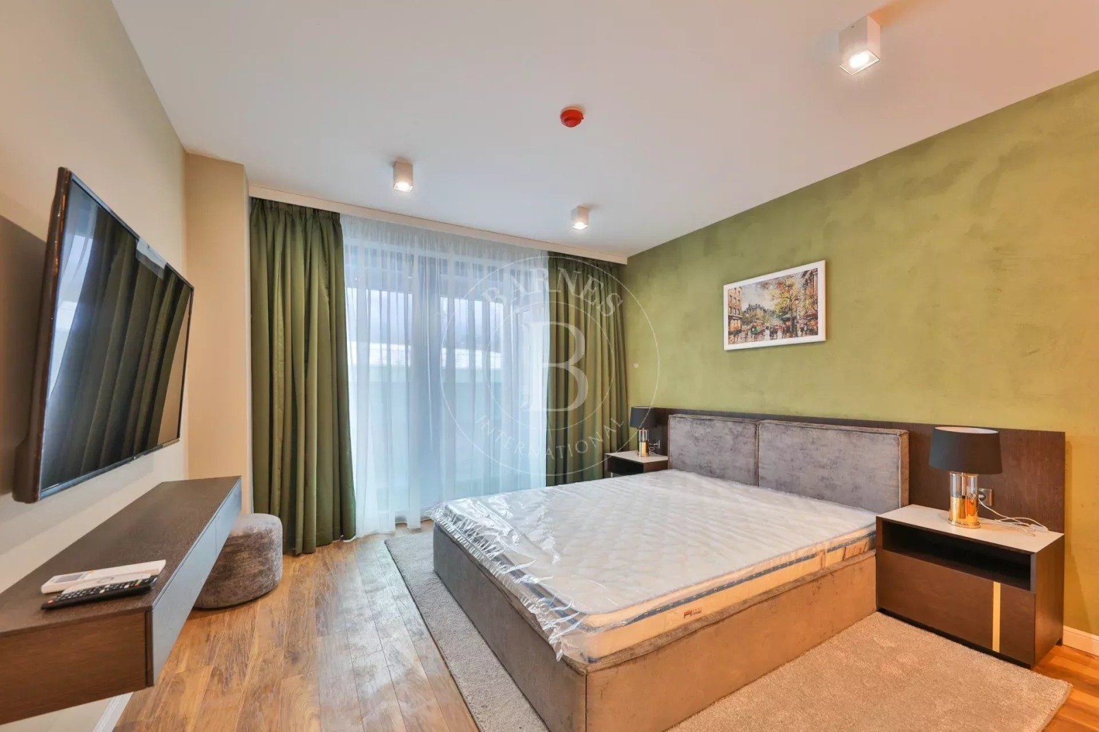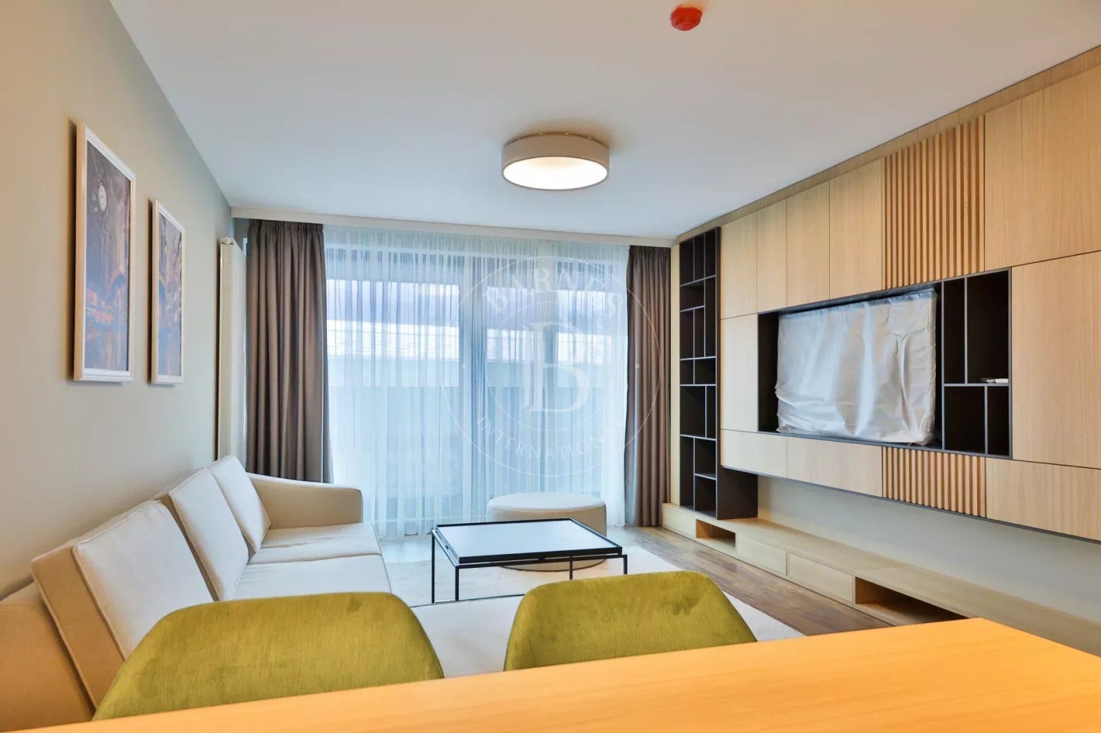 Интериорните решения са дизайнерски, с решения в светли и приятни тонове. Имотът се предлага обзаведен с качествени материали, мебели и оборудване за нуждите на бъдещия наемател.