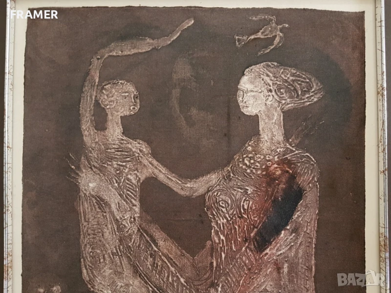 Оформено в стилна и скъпа рамка. Със стъкло и паспарту.