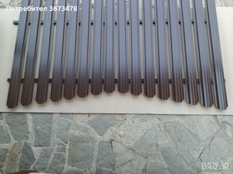 Метално пано изработено от метални летви от пластифицирана ламарина с полиестерно покритие с дебелина 0,5 мм.
