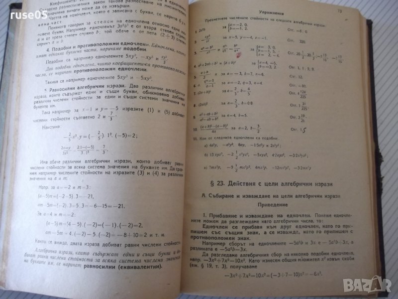 1. Алгебра за VII клас на общообразователните училища - 100 стр. - 1954 г. - Макавей Ганов / Петко Иванов